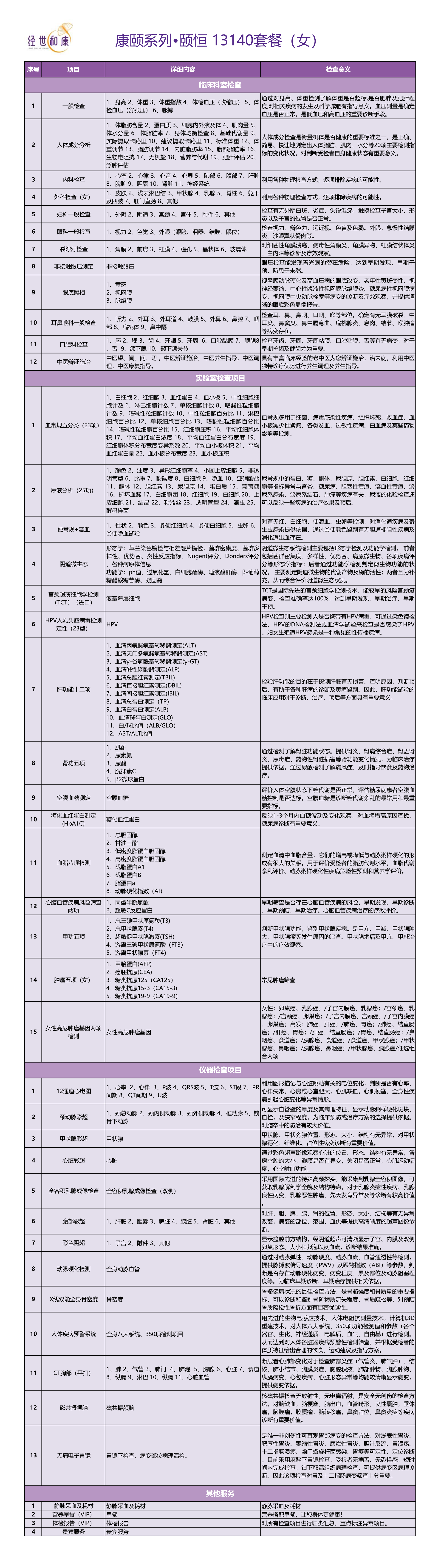 因為體檢中心體檢項目內容會不定期做調整,具體套餐信息以體檢中心實際檢查項目為準!