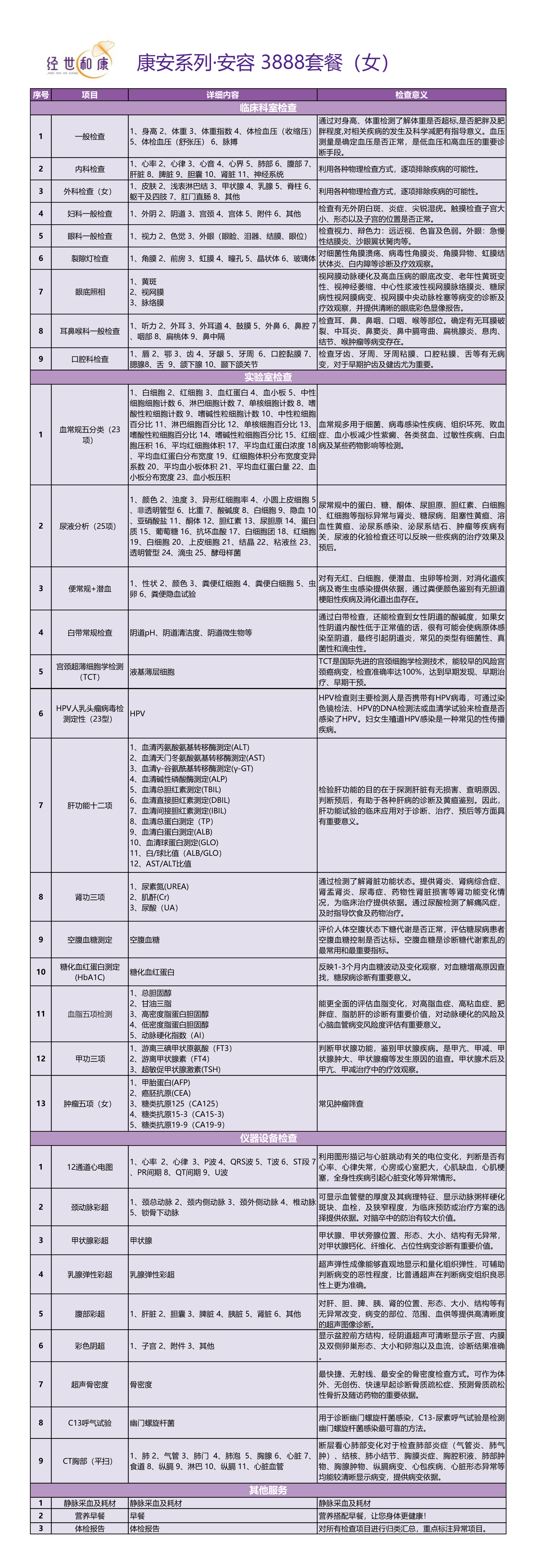 因?yàn)轶w檢中心體檢項(xiàng)目內(nèi)容會不定期做調(diào)整,具體套餐信息以體檢中心實(shí)際檢查項(xiàng)目為準(zhǔn)!